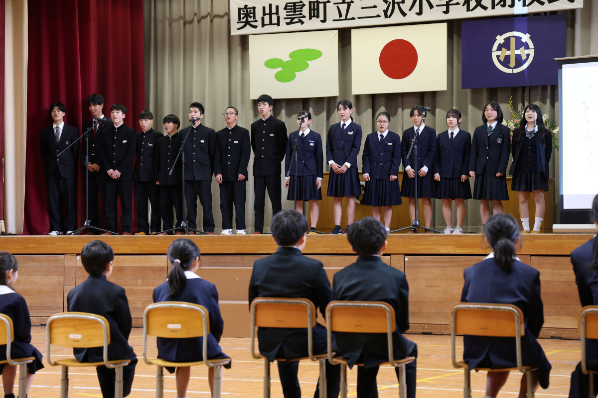 奥出雲町の三沢小学校(奥出雲町三沢)で3月22日に閉校式典と閉校記念イベントが開かれ、152年の地域と歩んだ同校の歴史に幕を下ろした。