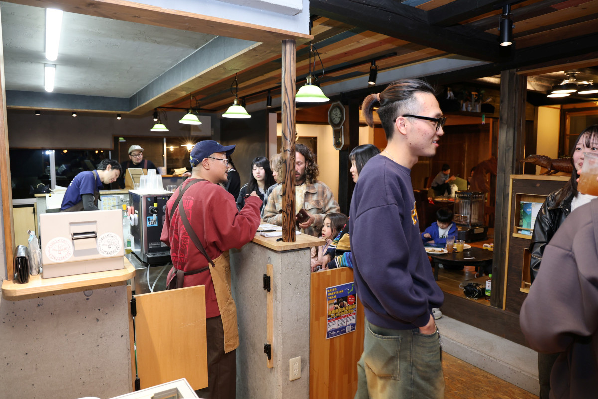 カウンターでは飲み物や食べ物を提供した