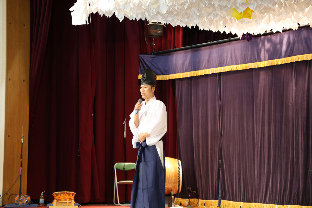 開会式であいさつする飯南神楽団の田部浩団長