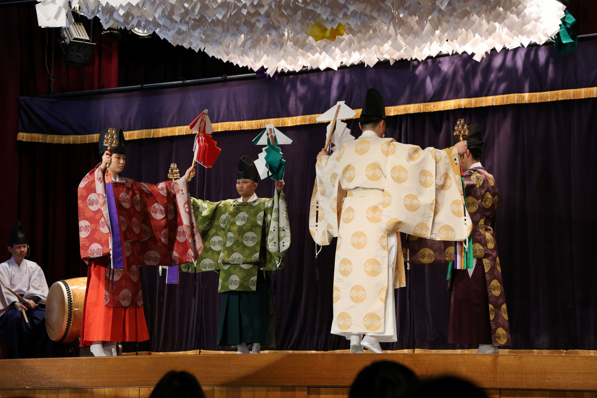 飯南神楽団が「神迎え」を披露した