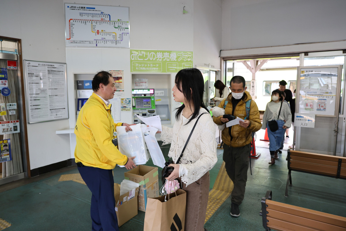 木次線で訪れる人たちにパンフレットなどを手渡した