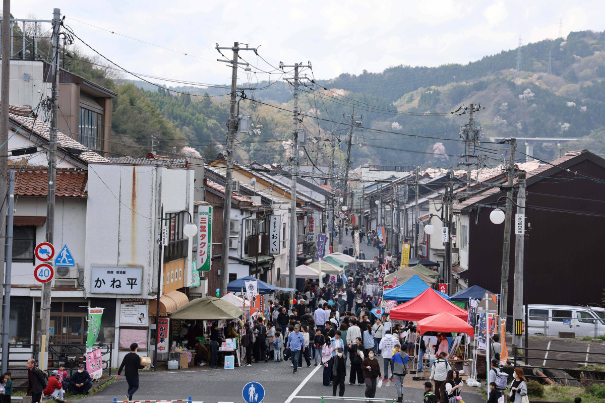 雲南の木次駅前から斐伊川堤防桜並木(雲南市木次町木次)周辺で4月4日・5日の2日間、3月中旬から市内各所で続く桜まつりのメインイベント「きすき桜まつり」が行われ、市外・県外から多くの観光客でにぎわった。